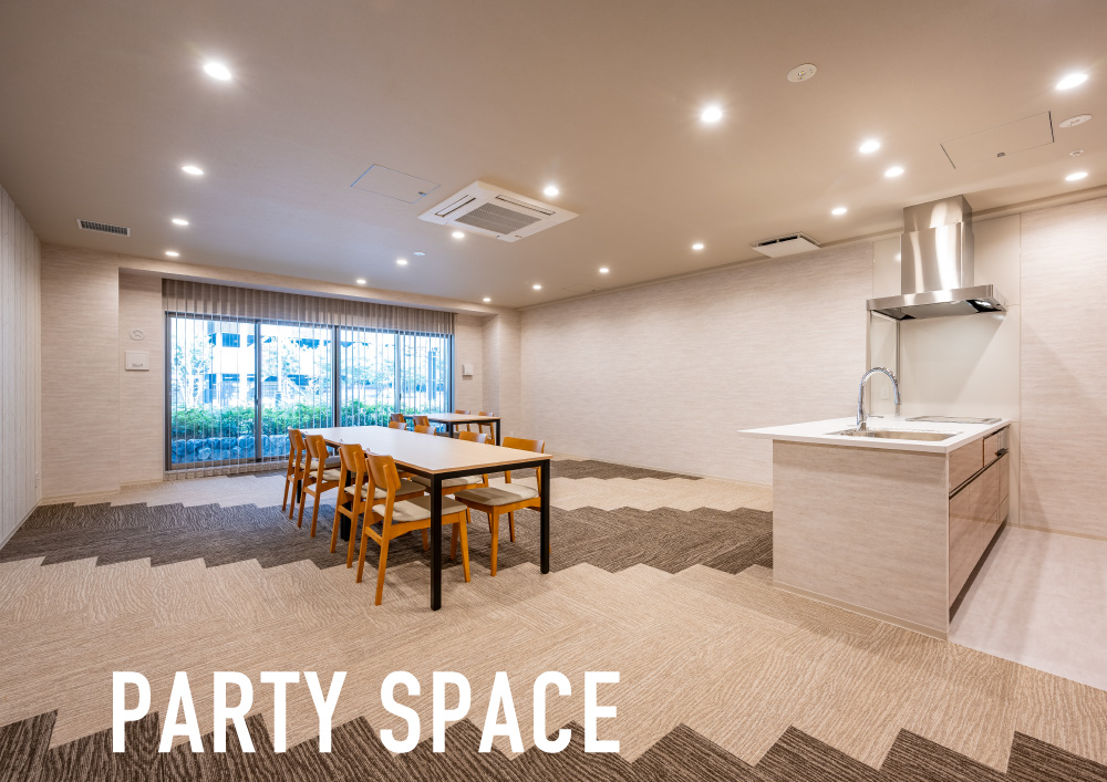 キッチン付きの「パーティスペース」、リモートワーク等に対応できる「コワーキングスペース」など