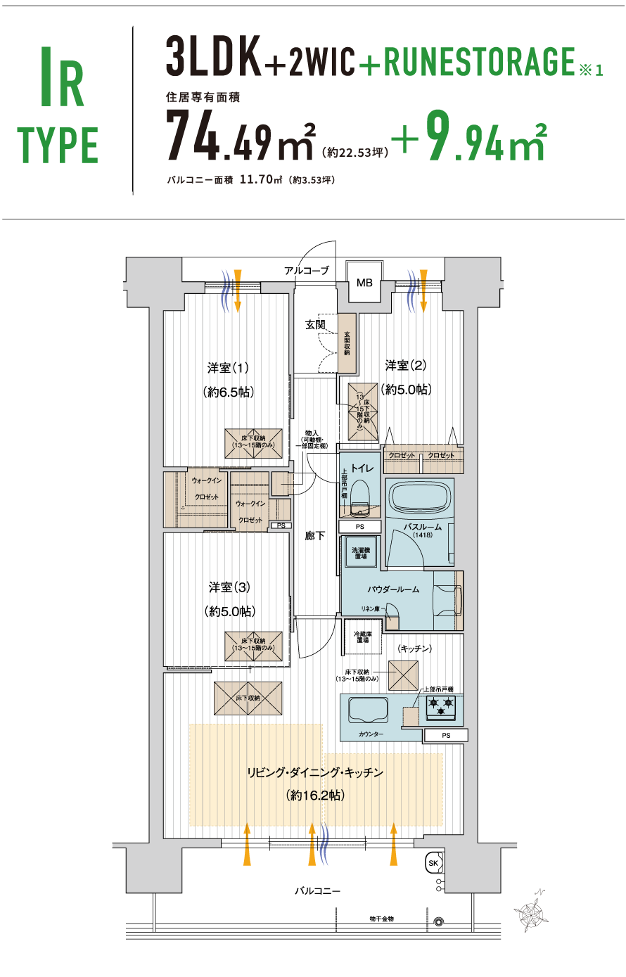 床下に広い収納スペースを確保し 居室スペースを広く活用できる「ルネストレージ」