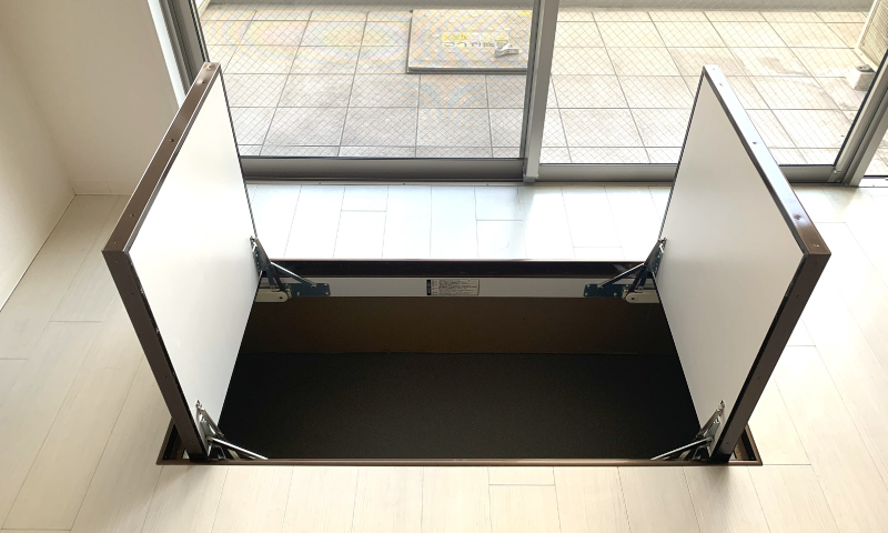 床下が広大な収納スペース。人がおりて収納することも可能です。