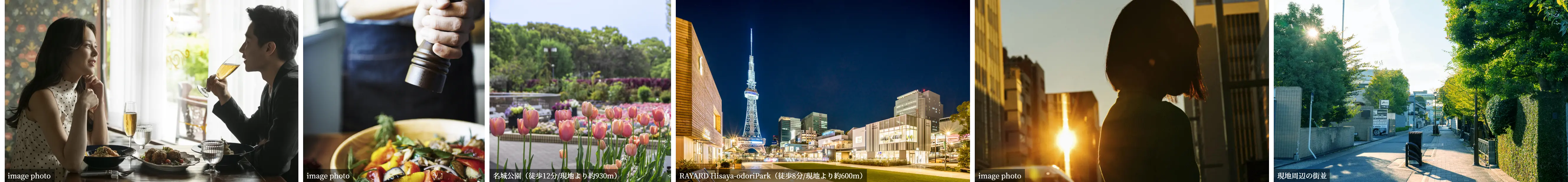 - ※1:主税町公園(徒歩1分/現地より約40m) ※2:RAYARD Hisaya-odoriPark(徒歩8分/現地より約600m) ※3:愛知県庁(徒歩11分/現地より約830m) ※4:名古屋市役所(徒歩9分/現地より約720m) ※5:名古屋城(徒歩12分/現地より約930m) ※6:名城公園(徒歩12分/現地より約930m)