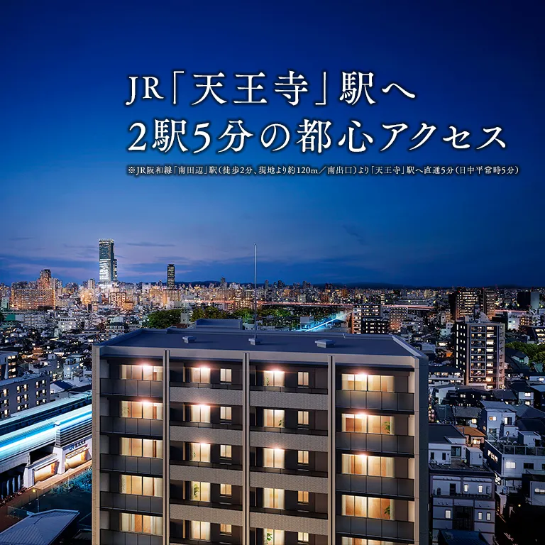 JR阪和線「南田辺」駅徒歩2分(現地より約120m/南出口)の利便性を加え、