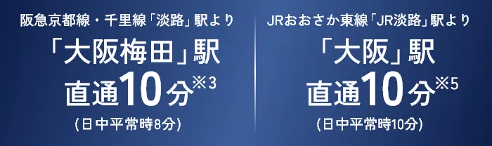 ダイレクトアクセスで、都心をもっと自由に。「大阪梅田」駅へ直通10分※3でアクセス。都心を身近に。