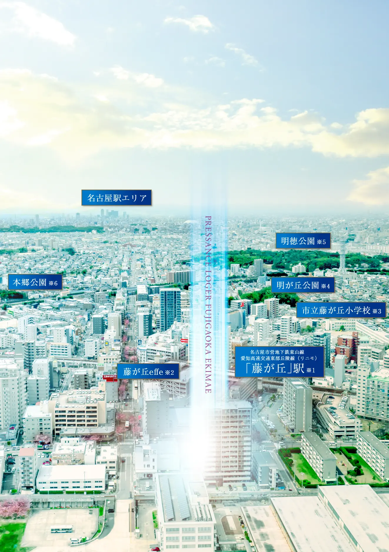 また、徒歩2分の愛知高速交通東部丘陵線(リニモ)「藤が丘」駅からは、豊田方面や「愛・地球博記念公園※7」へ行くのに便利です。