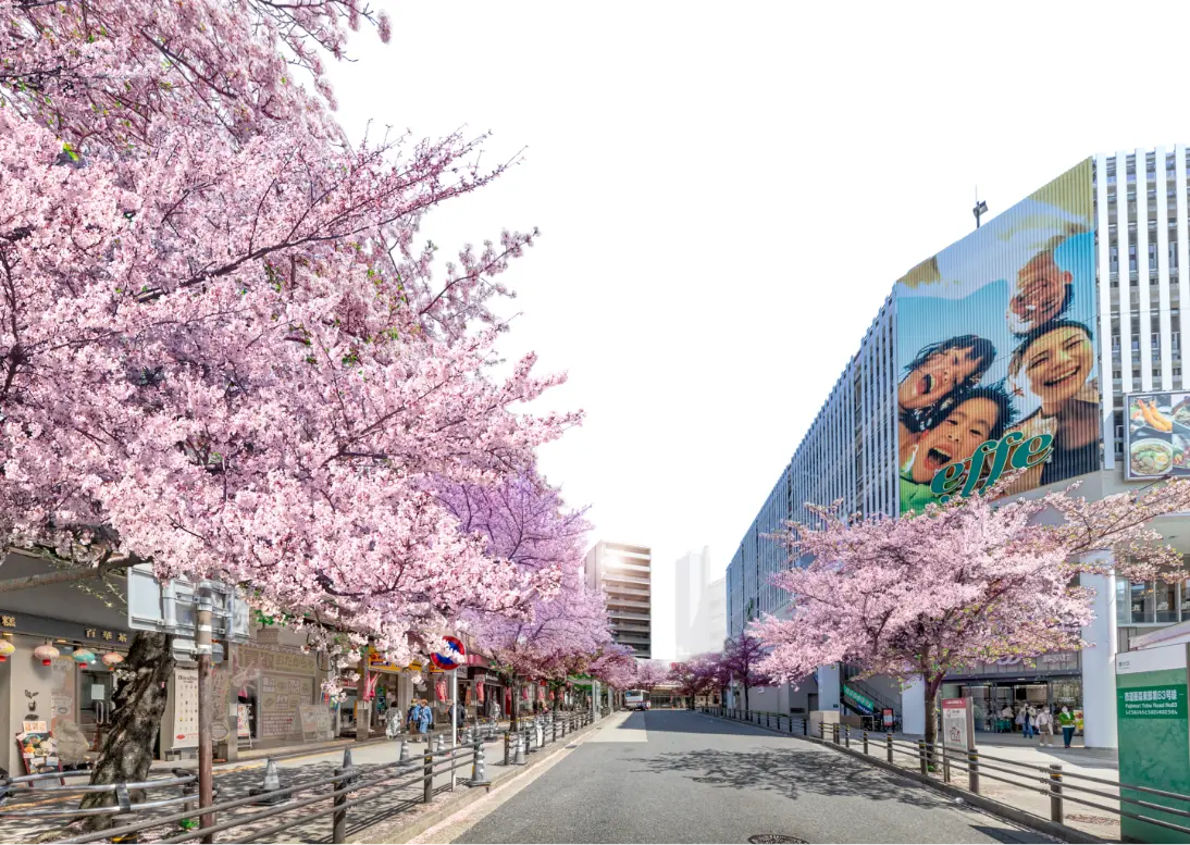 名古屋市営地下鉄東山線「藤が丘」駅前からは2本の桜並木の道が伸び、毎年春には約400本のソメイヨシノが目を愉しませてくれます。