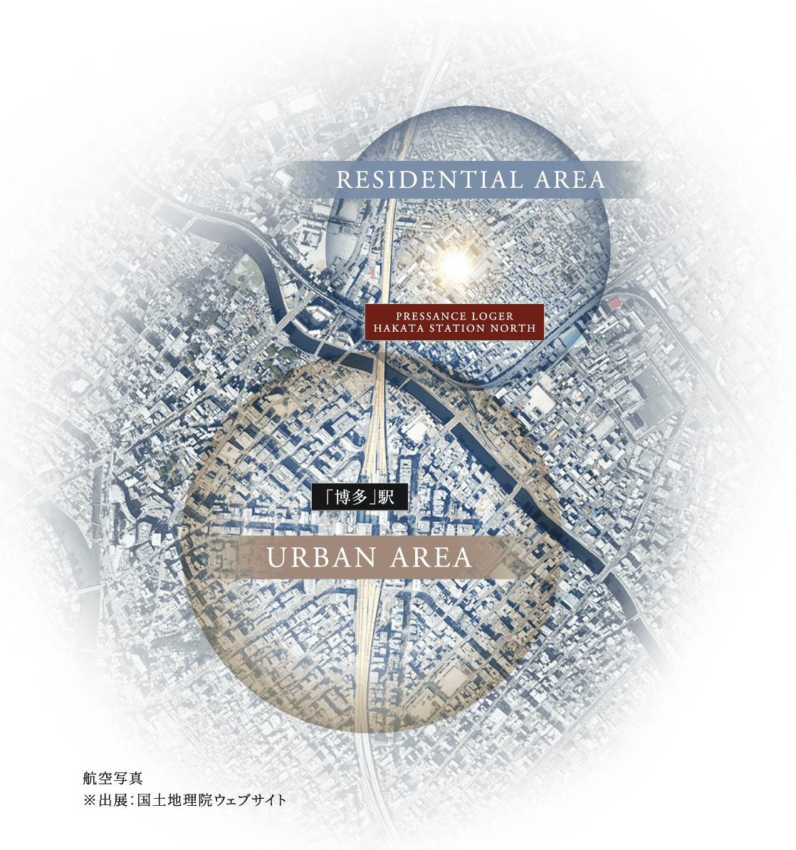 ※1:「Begin The HAKATA HAKATA 1km」は再開発(博多コネクティッド)により、未来に向けて変わりゆくJR博多駅周辺の新たなはじまりと、JR「博多」駅から1km(徒歩13分/現地より約1,000m)に位置する本件の特徴を表現したコンセプトワードであり、JR「博多」駅や本件商品を示したものではございません。