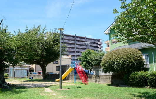 緑の潤いに親しめる公園や遊具が充実する公園が集まっており、