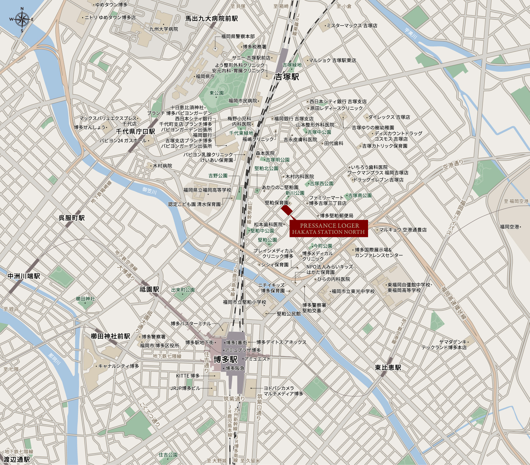 また、救急対応も行う福岡市民病院、九州大学病院といった総合病院も生活圏に位置しています。