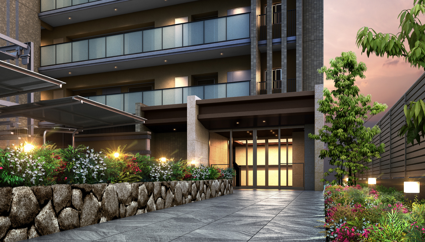 ※掲載の外観完成予想図は図面を基に描き起こしたもので、外観・外構・植栽・色彩・照明等は実際とは異なる場合がございます。行政官公庁の指導、施工上の都合および改良等のため設計・仕様・外構工事等に変更が生じる場合があります。また、現地周辺の建物等を省略して描いております。