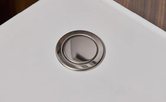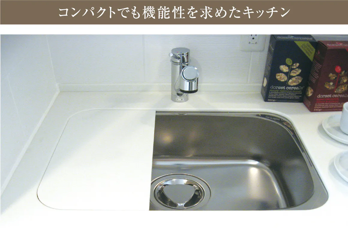 調理スペースを確保するため、人造大理石スライドプレートを採用。シンクの裏側に制振材を備え、水はね音などを抑える静音タイプです。(E・Fタイプのみ)