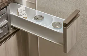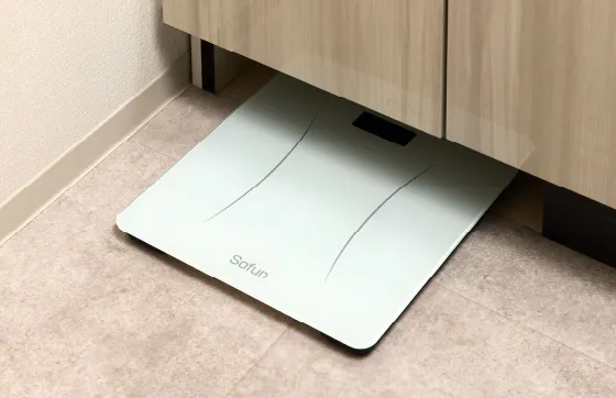 置き場所に困るヘルスメーターを、洗面化粧台の下にすっきり収納できます。