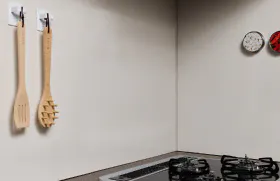 調味料をまとめて収納できる小物入れを設置。調理中にすぐ取り出せるようコンロ横に設けました。