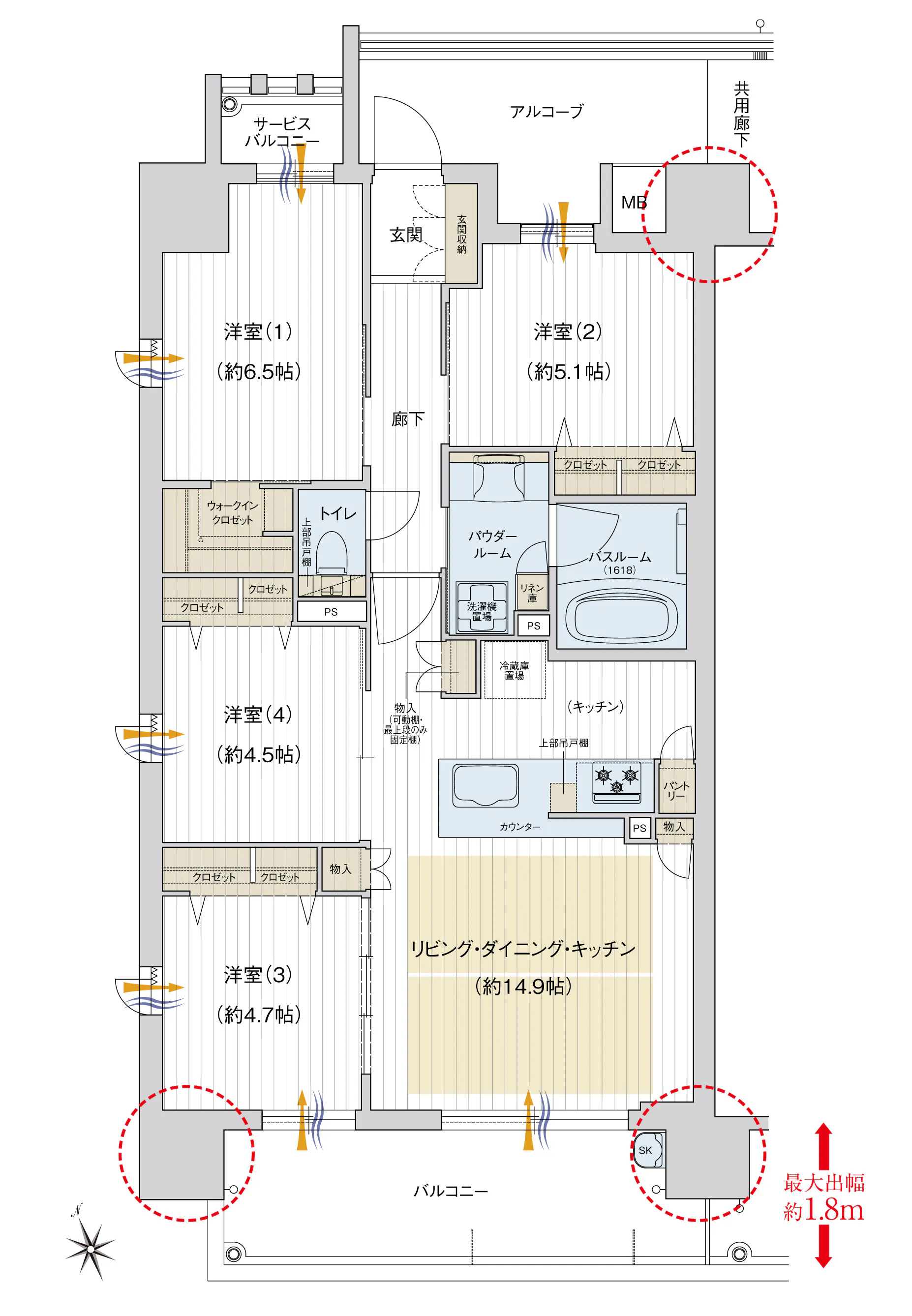 サービスバルコニー面積/1.70㎡(約0.51坪)