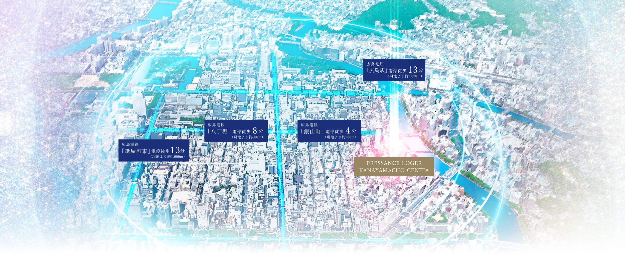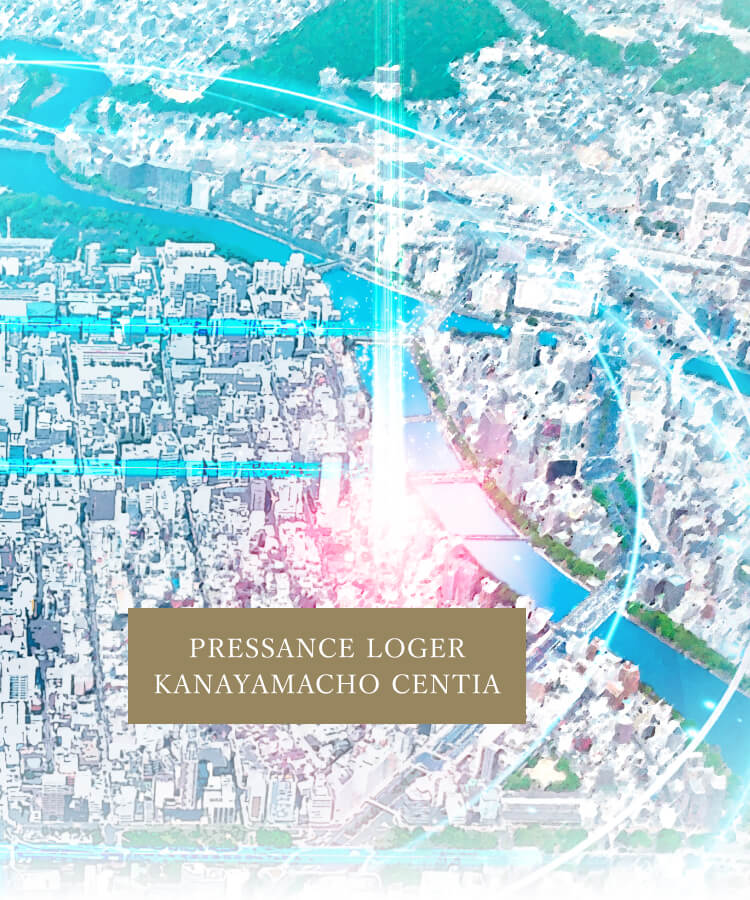 ※掲載の航空写真は2024年11月に撮影したものに一部CG処理を施したものです。 また、光の柱と光の円は本物件位置やエリアを示すためのものであり、建物の高さや規模を表現したものではありません。予めご了承ください。