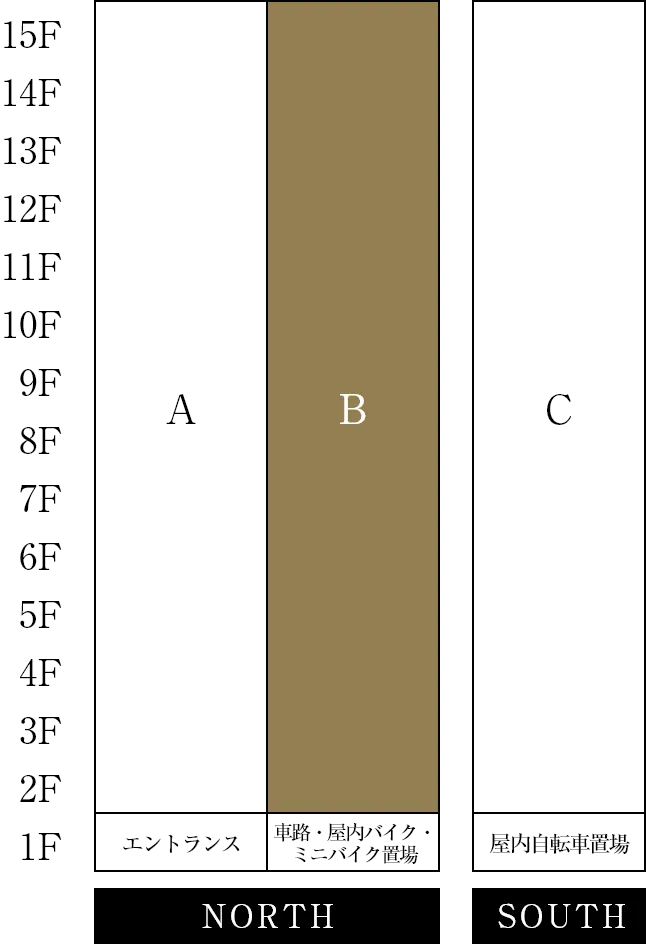 - ※掲載の立面図は、計画段階の図面を基に描き起こしたもので、実際とは異なります。形状の細部・設備機器・配管等は省略または簡略化の上、表現しております。