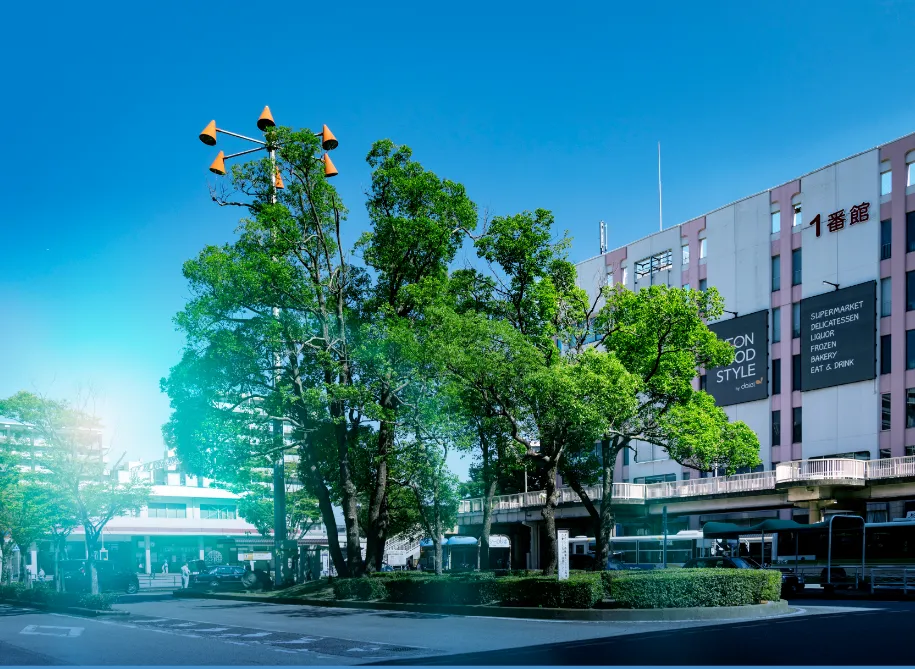 堂々としたキャノピーが描く車寄せは、ホテルのような上質な迎賓空間。石畳調の路面と、ロータリー中央のシンボルツリーが、訪れる人に穏やかな印象をもたらします。