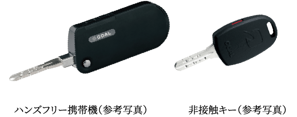 玄関錠及び共用部に対応したハンズフリー携帯機。荷物を抱えている時や急いでいる時など、カバンからキーを出す必要がなく、スムーズな出入りが可能です。(風除室〜エントランスホール、エントランスホール出入口)※非接触キーは除きます。