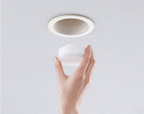 本物件では、住戸内のダウンライト照明に「LEDフラットランプ」を採用。簡単にLEDランプの取替ができ、ランプを交換するだけで、ライフスタイルに合わせて明るさ・光色・配光を変えられます。ランプは安心の5年保証です。