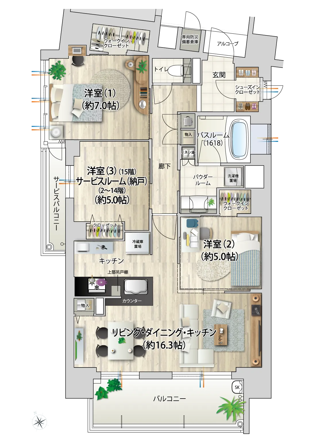 ※記載の家具等・調度品は含まれておりません。家具などの色調・配置につきましてはイメージです。