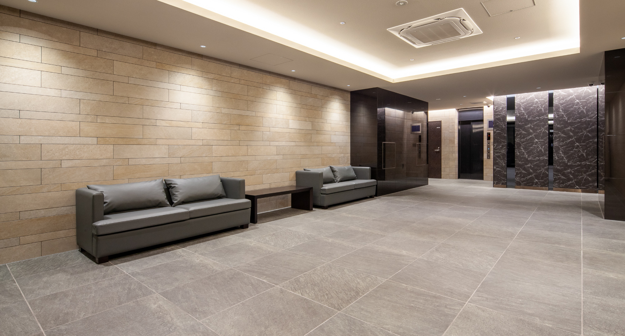 迎賓のスペースをシックな装いで包み込んだエントランスホール。