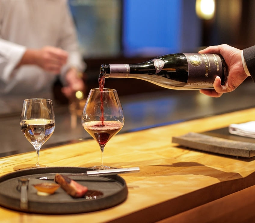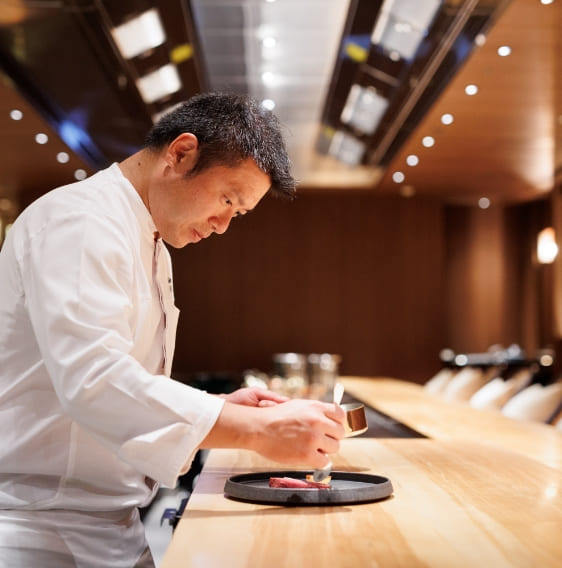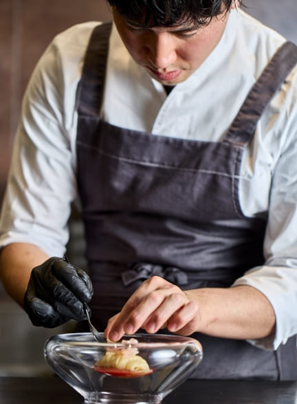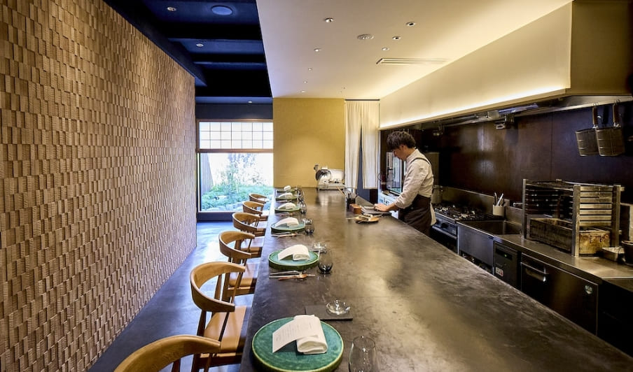 京都・二条城のほど近く、「HOTEL THE MITSUI KYOTO」内に構える「都季」は、ミシュランカイドにも掲載されているイノベーティブフレンチの名店。シェフ浅野哲也氏が手がける料理は、京都の名水で引いた“出汁(フォン)”を軸に、地元食材とフランス料理の技を融合させた独創的な構成が魅力です。全12品で構成される「シグネチャーコース」は、野菜・魚・肉それぞれの「だしスナック」に始まり、繊細さと力強さを併せ持つ皿が続きます。水盤を臨むカウンターや静かな個室で、視覚・味覚・香りすべてに心を揺さぶられる時間を。記念日や特別な夜にふさわしい空間です。