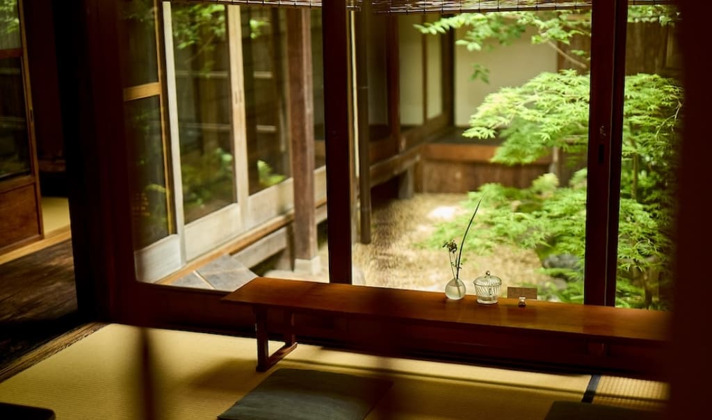 ここで味わえるのは染井の水を使って淹れたコーヒー。天気のよい日は、縁側で足を伸ばして、ゆったりと。一般には閉ざされた茶室では、完全予約制の「コーヒーコース」が楽しめます。