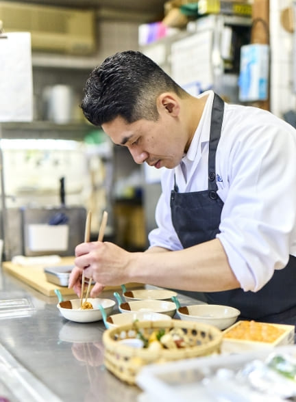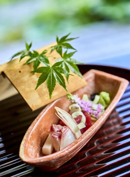 代々御所ゆかりの有職料理を受け継ぎ、私で十一代目となります。長い歴史の中で守られてきた技と精神を礎に、旬の食材が持つ“命”に真摯に向き合い、最もふさわしいかたちでお客様へお届けすることを大切にしております。