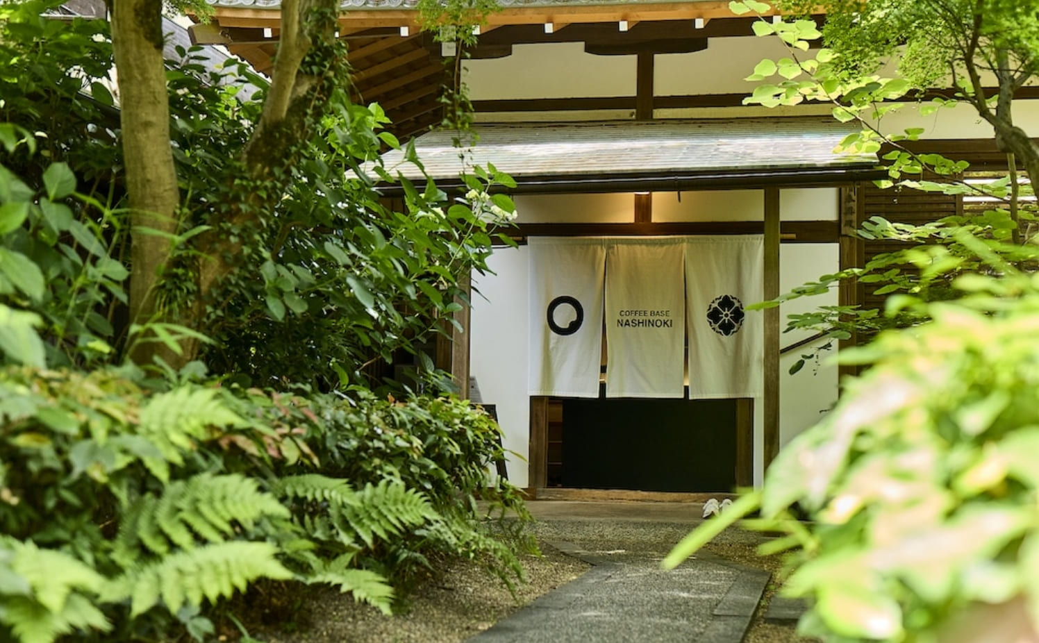 京都御苑の東側、清和院御門に隣接する梨木神社は、通称を萩の宮といい、萩の名所としても知られます。境内には京都三名水の一つで、茶湯にもふさわしい水として有名な染井(そめい)の水が湧き出しています。拝殿を背に、手水舎の隣にある建物がかつて京都御所で茶室として利用されてきた旧春興殿。その旧春興殿が「Coffee Base NASHINOKI」として活用されています。