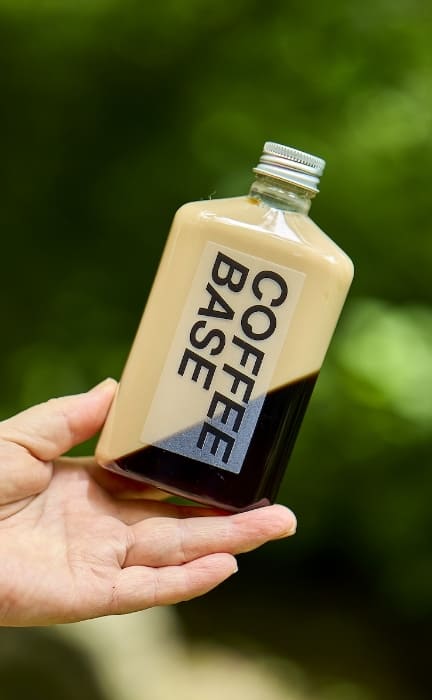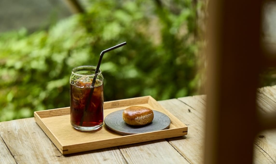 染井の水を使い、2時間かけて抽出する水出しコーヒー。合わせた栗まんじゅうは「京菓子司 金谷正廣店」作。上品な甘さが丁寧に淹れたコーヒーとよく合います。看板メニューでもあるボトルドリンクは持ち歩いてもおしゃれです。