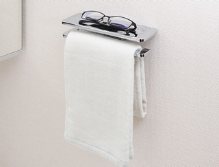 タオルリングには、眼鏡やネックレスなどを一時的に置ける小物置を設けました。