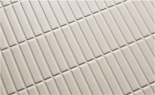 切り出した石をキチンと連続してそろえたようなデザイン。水の表面張力を壊す効果があり、乾きやすく、お掃除がしやすい床です。