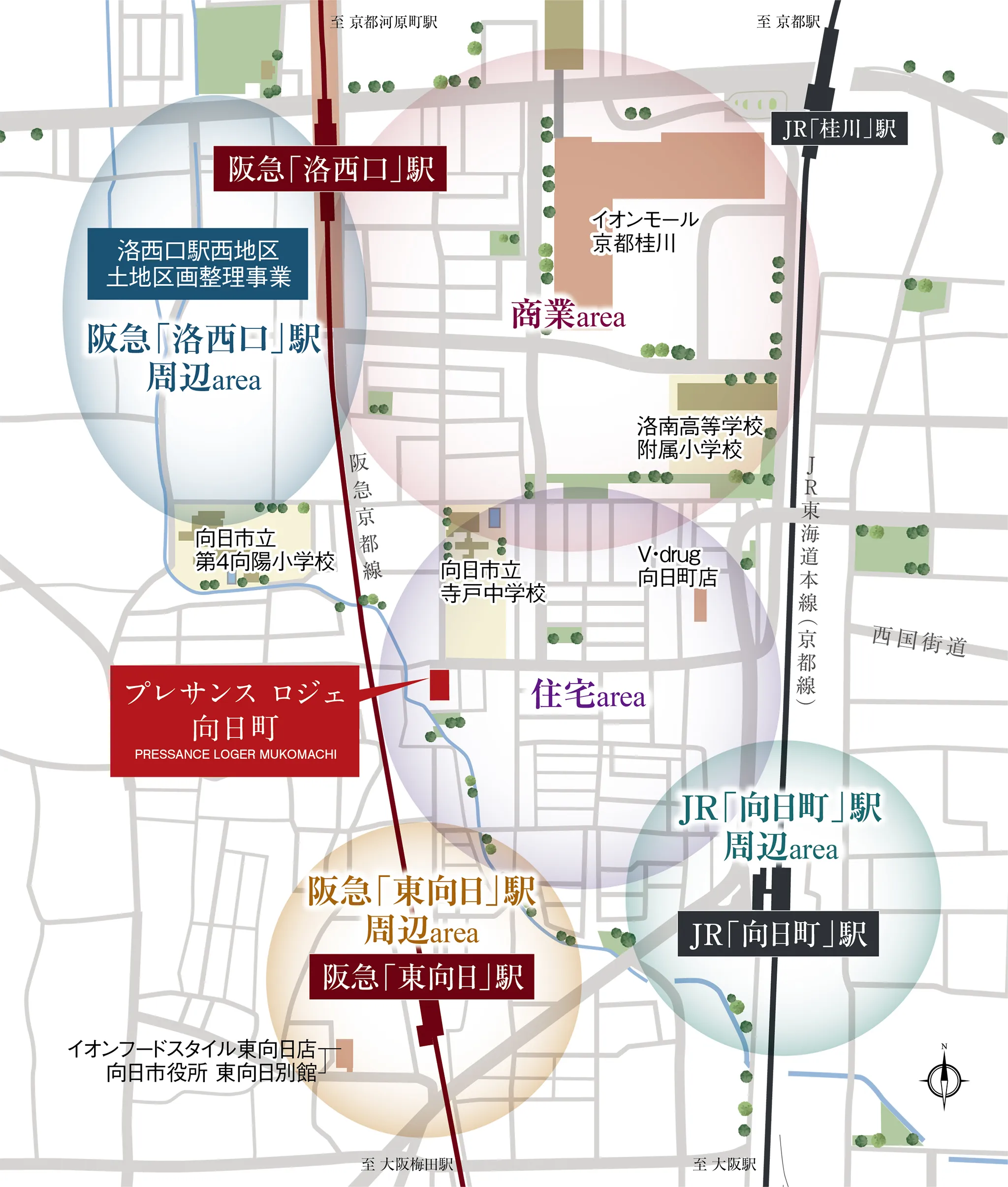 通学区となる「向日市立第4向陽小学校」まで徒歩6分、「向日市立寺戸中学校」まで徒歩2分と身近。保育園・幼稚園も徒歩圏に充実し、子育てを快適に楽しめる教育環境です。