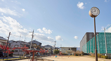 子どもたちがのびのびと遊べる公園も豊富に揃う向日町エリア。徒歩2~5分圏内だけでも8つの公園があり、親子のふれあいを育むと共に、気ままな散策の目的地としても利用できます。