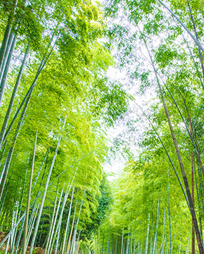 奈良時代創建と伝わり、市名の起源でもある「向日神社(徒歩 23分・現地より約 1,800m)」や、現在は大極殿公園(徒歩24分・現地より約1,860m)として継承されている「史跡長岡宮跡」をはじめ歴史の面影を伝える向日市。市域を北東から南西へと縦断する旧西国街道沿いには昔ながらの風情が残り、向日丘陵を彩る竹林が美しい風景を描いています。