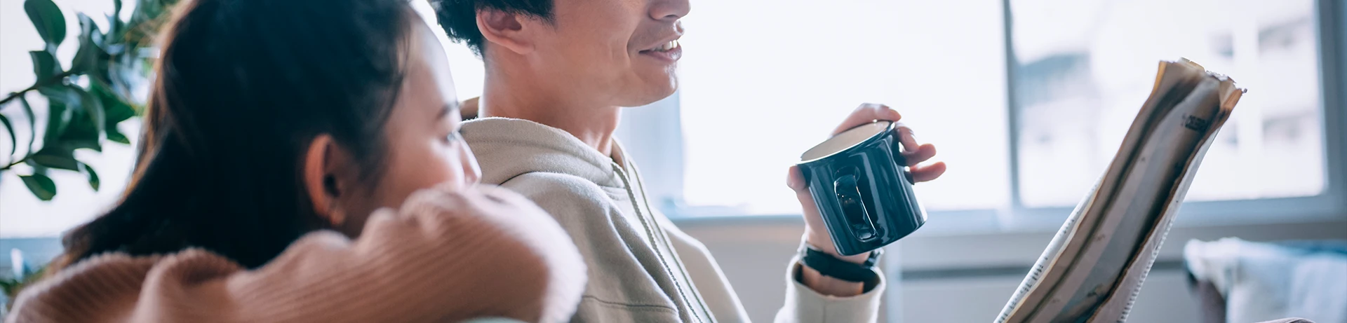 住戸内断熱&結露対策参考イラスト 外気とふれあう外壁側の壁面・柱・梁には、断熱材(約20〜25mm厚)を吹き付けた上に、仕上げ材を貼るというきめ細かな工夫を施しました。これにより外気温と室内の温度差を吸収。温度差によって発生する結露の防止に大きな効果をもたらしています。
