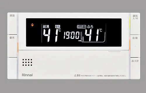湯温・湯量を調整し、自動お湯はり機能や追い焚き機能のほか、台所リモコンとの通話可能なインターホンタイプを採用。専用スマートフォンアプリと接続することでアプリから給湯器を動かすことができます。