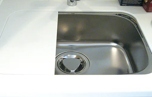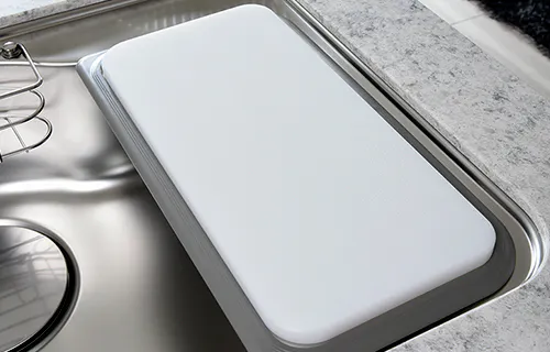 調理スペースを確保するため、人造大理石プレートを採用。シンクと一体型ではないため、自由に取り外すことが可能。スペースを有効にお使いいただけます。