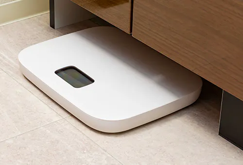 置き場所に困るヘルスメーターを、洗面化粧台の下にすっきり収納できます。