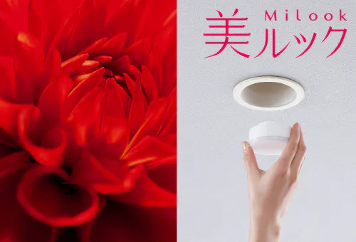 洗面化粧台上部のダウンライトには、本来の色を忠実に見せるあかり「美ルック」を採用。お肌の色味も素敵に見えるあかりで、一日の始まりを気持ちよくスタートしましょう。