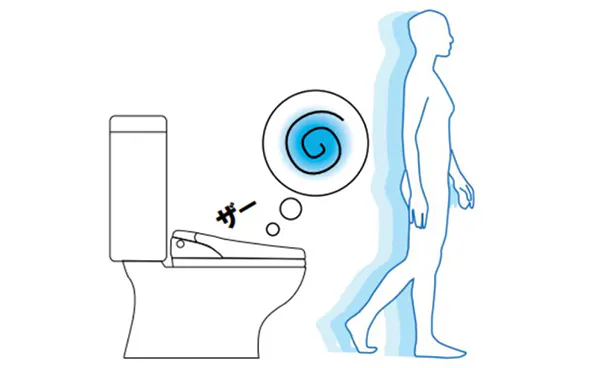 着座すると脱臭開始。より強力に、においを吸引します。スイッチ操作でさらに強力脱臭。