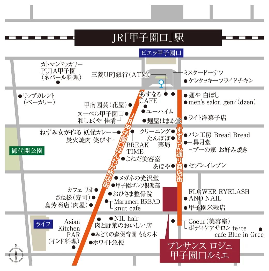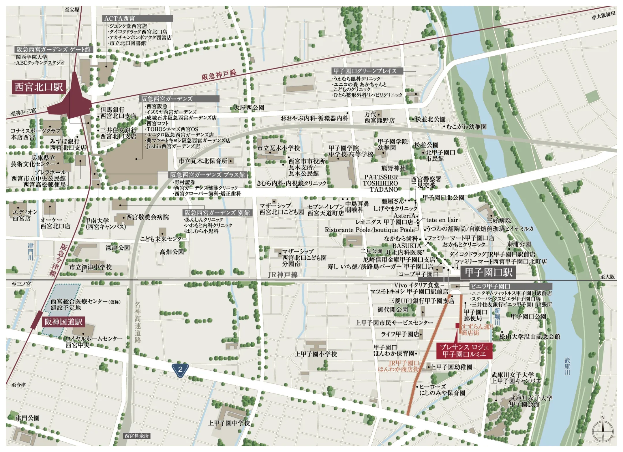 JR東海道本線(神戸線)「甲子園口」駅前の充実した買い物環境に加え、 少し足を伸ばせば大型複合施設「阪急西宮ガーデンズ」も生活圏に。