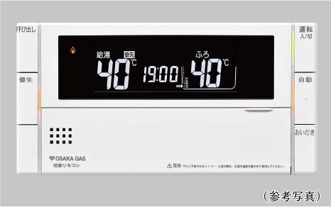 インターホン付浴室リモコン - 湯温・湯量を調整し、自動お湯はり機能や追い焚き機能のほか、台所リモコンとの通話可能なインターホンタイプを採用。専用スマートフォンアプリと接続することでアプリから給湯器を動かすことができます。