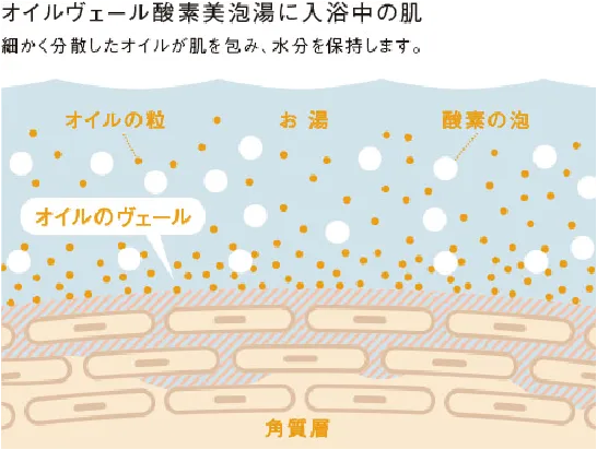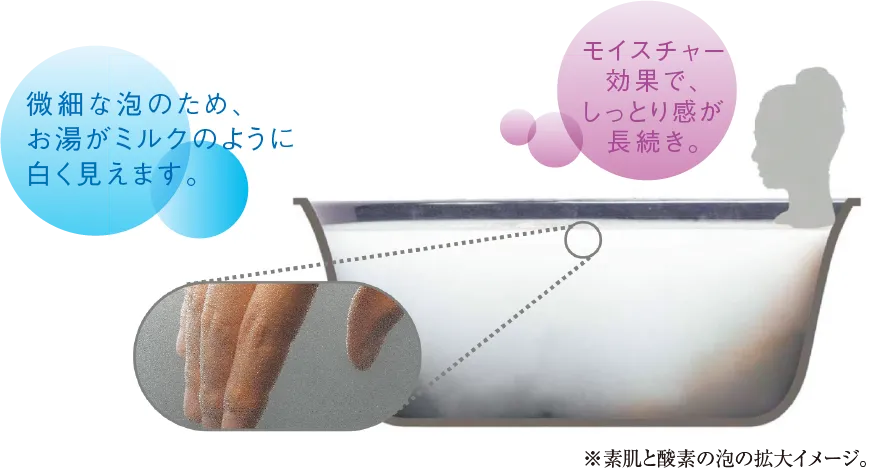 やさしく温める酸素を含んだミクロの泡。 - 酸素美泡湯は、入浴剤などを使わず、お湯に酸素を含んだミクロの泡を加えたもの。