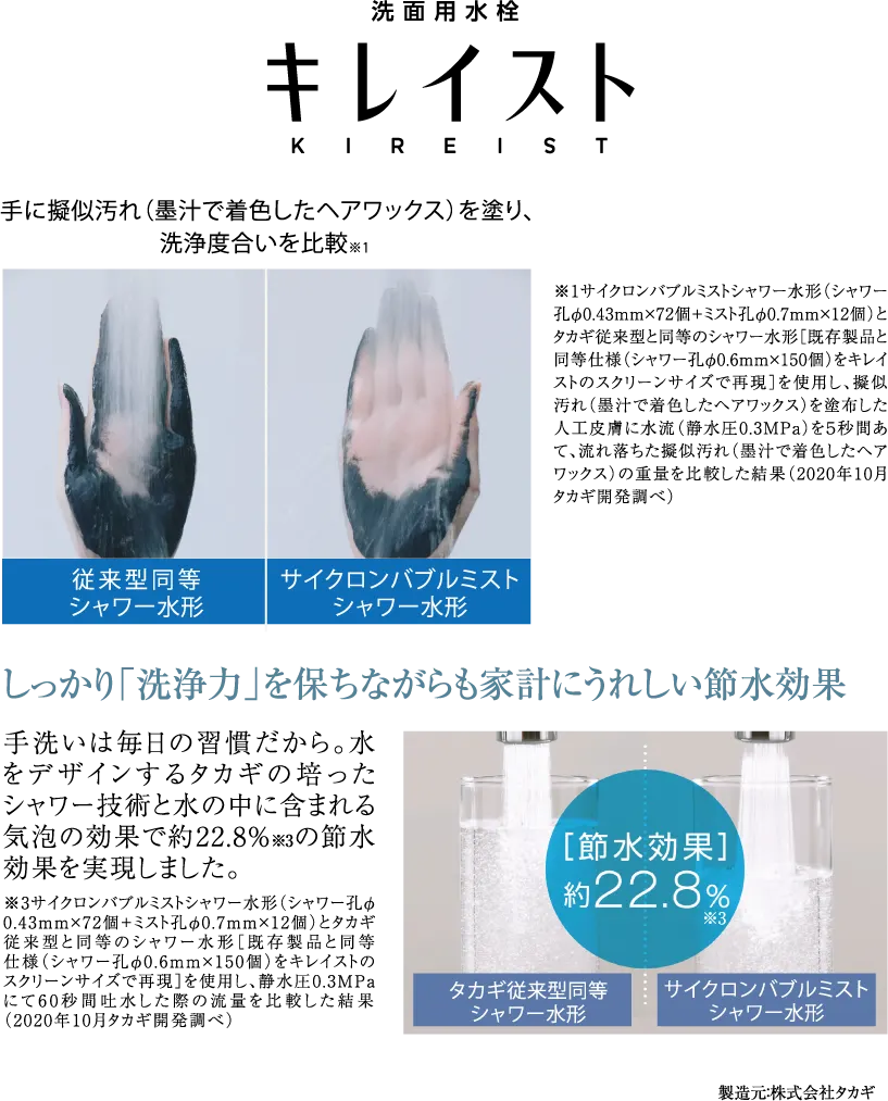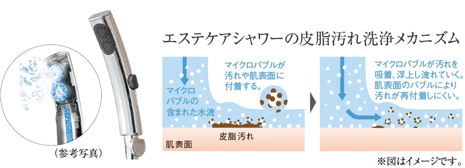 - きめ細やかな空気の泡を含んだシャワーで、肌の皮脂汚れをすっきりきれいに。