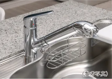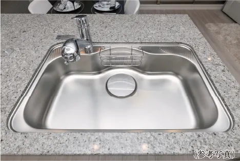 - 大きな鍋などもラクに洗えるワイドシンク。シンクの裏側に制振材を備え、水はね音などを抑える静音タイプです。