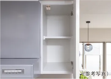 - 食材や食器、調理器具など多目的に使える収納に便利な吊戸棚を設けました。