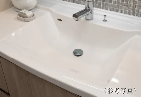 洗面カウンター - 美しさが映える人造大理石仕様のボウル一体型洗面カウンター。継ぎ目がないのでお掃除も簡単。