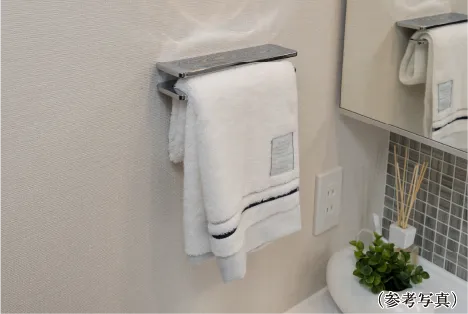 - 浴室ドアの外側にはタオル掛けを2段に設置。2枚のバスタオルを同時に掛けて、用途に応じて分けて使うことができます。