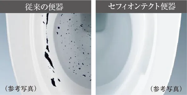 - 陶器をナノレベルまでツルツルな表面にし、汚れが付きにくく、落ちやすい「セフィオンテクト」を採用しました。トイレのお掃除もらくらくです。