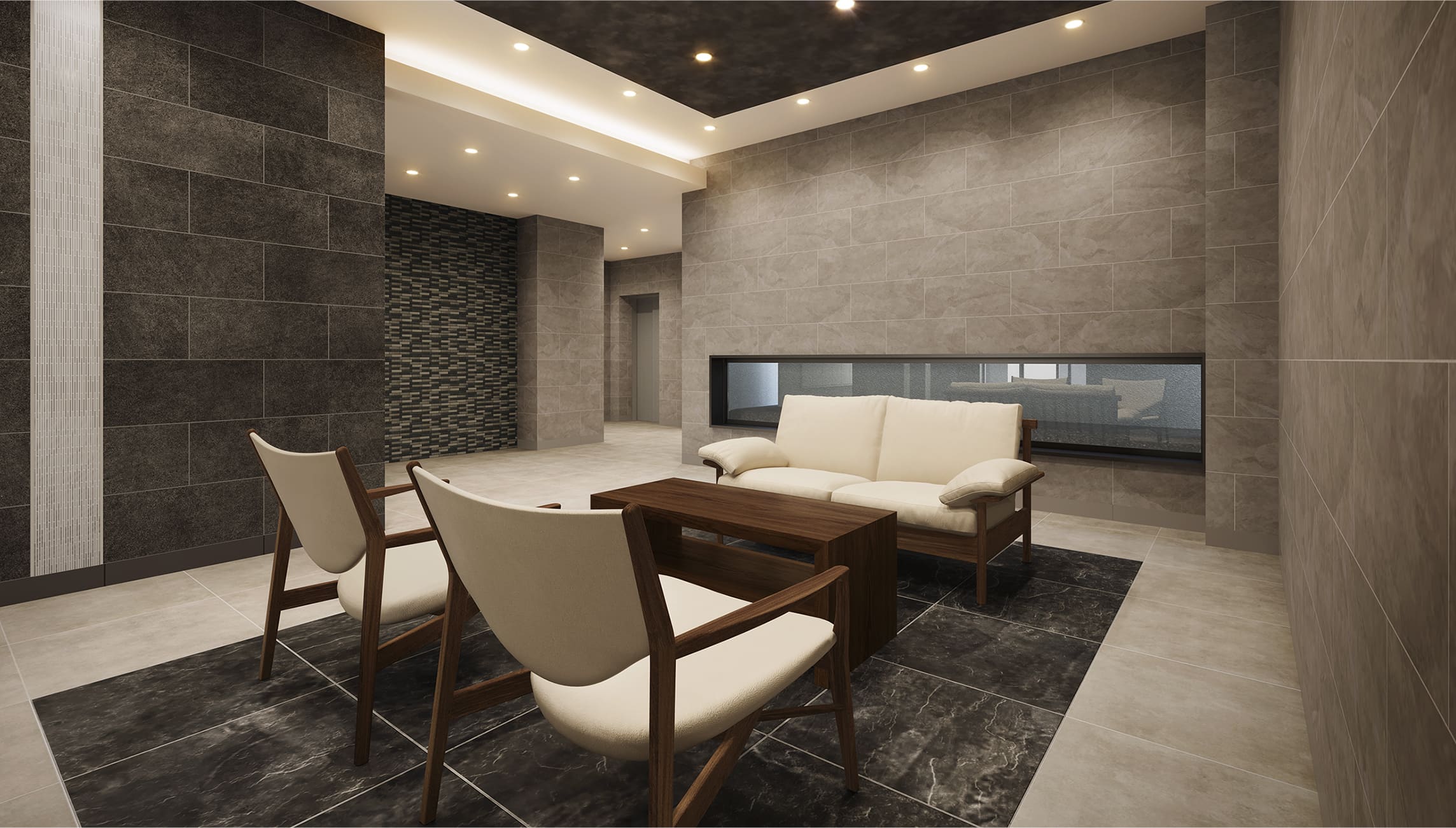 エントランス周辺には、ボーダータイルを採用し、重厚感と上質さを演出しました。