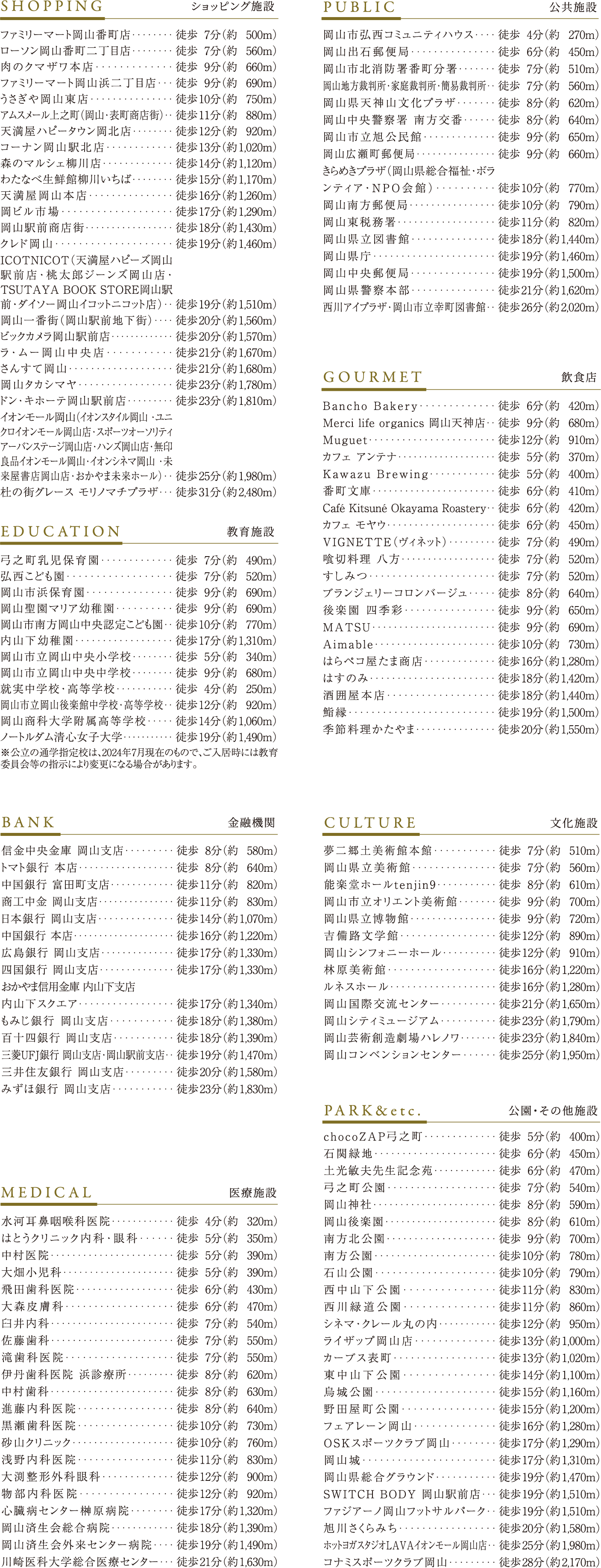 ※掲載の各種施設は2024年7月現在のものであり、将来に亘ってその所在・営業が保証されるものではありません。あらかじめご了承ください。